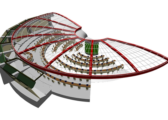 I was the art director for this large scale station promo set, for Hungry Man productions and the US cable station TBS. We built a third of a vast imaginary futuristic comedy nerve centre in the old Hughes Aviation building in Los Angeles where the Spruce Goose was made in the 1930s. The remaining two thirds, the exterior and the roof were composited afterwards by The Mill. My role was to design the set in consultation with the production designer Robert De Vico, produce renderings, fly-throughs, digital models for post production, plans and to oversee the construction.